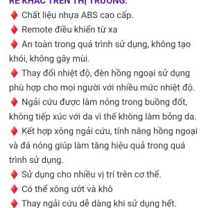 - Thiết kế tiện lợi: Ghế xông được thiết kế эргономичный, thoải mái khi sử dụng, phù hợp với mọi đối tượng.