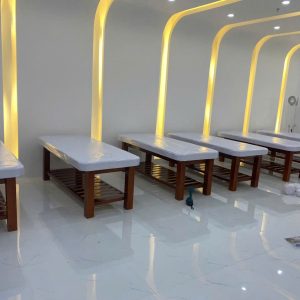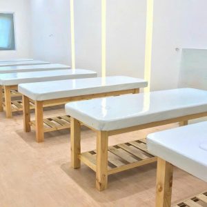 - Cấu trúc gỗ vững chãi giúp giường massage spa không bị rung lắc, tạo sự an tâm tuyệt đối cho cả khách hàng và kỹ thuật viên.