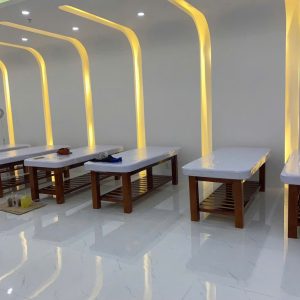 - Sự kết hợp giữa gỗ và nệm cao cấp tạo nên tổng thể hài hòa, nâng tầm không gian trị liệu thẩm mỹ, gây ấn tượng mạnh mẽ với khách hàng ngay từ cái nhìn đầu tiên.
