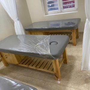 - Cấu trúc gỗ vững chãi giúp giường massage spa không bị rung lắc, tạo sự an tâm tuyệt đối cho cả khách hàng và kỹ thuật viên.